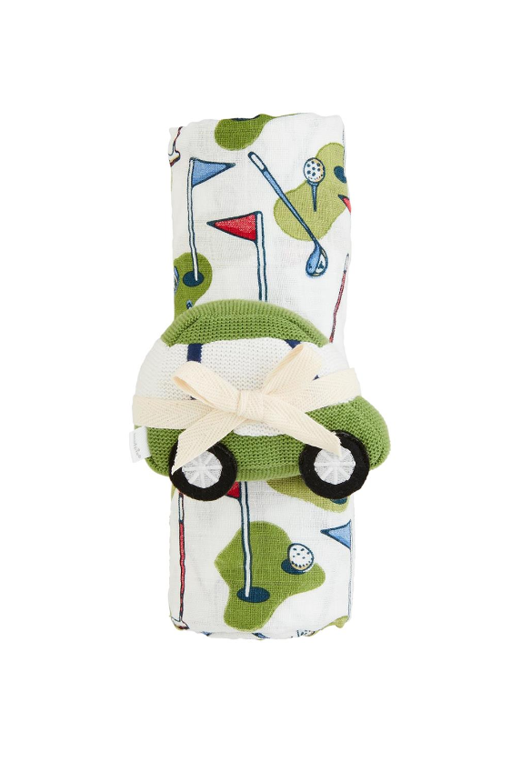 Blue Golf Swaddle & Rattle Set