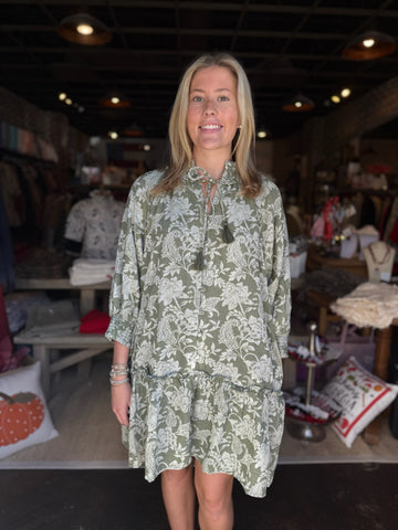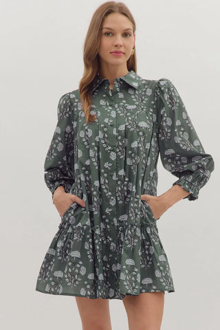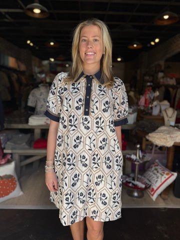 Ecru Floral Ruffle Puff Sleeve Mini Dress