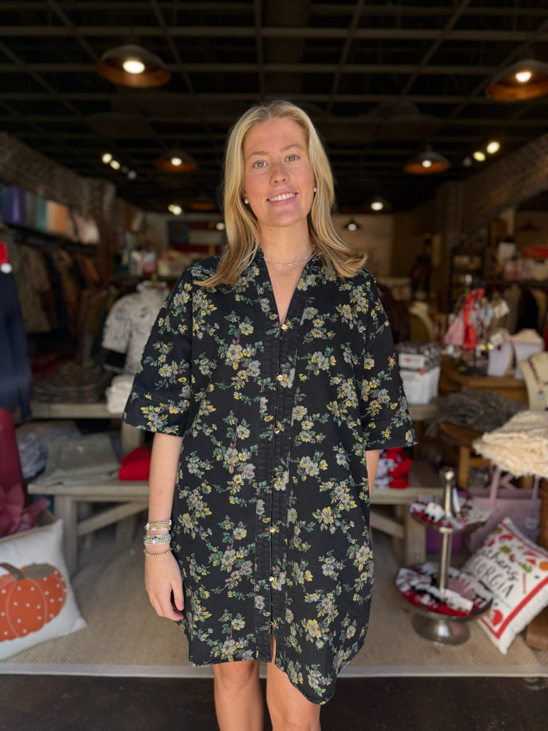 Introducing the Jade Dress—where classic denim meets whimsical florals for a look that's effortlessly charming. This versatile piece features a sturdy denim base adorned with delicate floral details, perfect for transitioning from casual days to evening adventures. Whether you're heading to brunch or a garden party, the Jade Dress brings a fresh, feminine touch to your wardrobe. Dress it up with heels or keep it cool with sneakers—either way, you'll turn heads with this playful, timeless essential.