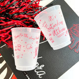 It's Saturday in Athens! These are sold in sleeves of 10 cups, perfect for celebrating the Dawgs with your favorite people. · Original design by Natalie Kilgore © all rights reserved · "It's Saturday in Athens!" on the front; "Cheers to the glory days!" on the back · 16 oz capacity · Sturdy and reusable; frosted cups · Hand wash recommended