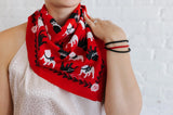 Introducing Keva Style's Spirit Bandana Scarf in red. Made from hand-drawn or painted original art by our collective female artists, this versatile scarf can be worn in your hair, on your tote bag, or around your neck, wrist, or ankle. Express your style and support female artists with this elegant accessory. GO DAWGS!