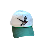 Embrace the outdoors with this two-tone cap featuring an embroidered wood duck. With a white crown, green bill, and matching trim, it’s perfect for nature lovers and outdoor enthusiasts.
