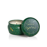 Our emerald and gold Crystal Pine Glimmer Mini Tin has the perfect blend of frosted fir, snowy woods, pine and sage. It is sure to create the ultimate holiday vibe in any space!