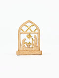 Our wood and gold nativity beautifully captures the spirit of the holidays with its classic design and warm, natural materials. Crafted from rich wood and accented with gleaming gold details, this nativity set brings a touch of elegance and reverence to your holiday decor.