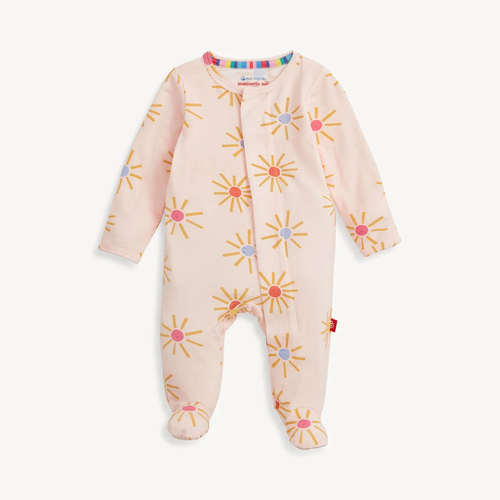 - Magnetic closures make for quick, easy dressing and diaper changes.