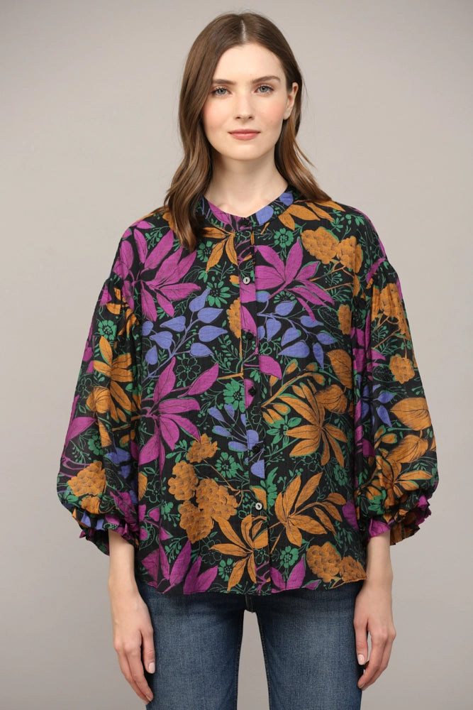 Make a statement with this vibrant floral blouse that brings instant personality to your wardrobe. The eye-catching print pops with color and charm, while the playful bubble sleeves add a fun, feminine touch that's totally on-trend. Perfect for dressing up a casual day or adding flair to your favorite jeans, this blouse is your go-to piece for turning heads and spreading good vibes wherever you go.