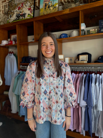 Katie Ruffle V-Neck Smocked Puff Sleeve Blouse