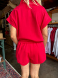 FINAL SALE - Red Scuba Drawstring High-Rose Short
