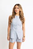 Elevate your professional wardrobe with the Chambray Linen Stripe Vest. Crafted from breathable linen blend fabric, this vest offers a refined look while keeping you comfortable throughout the day. Its subtle stripe design adds a touch of sophistication, making it perfect for layering over shirts or blouses. Upgrade your business attire effortlessly with this versatile piece that combines style and ease.
