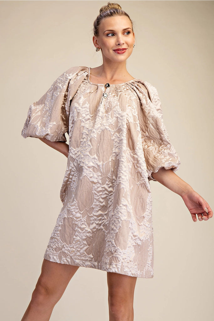 Champagne Puff Sleeve Mini Dress