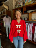 FINAL SALE - Red Front Bow Sweater Cardigan