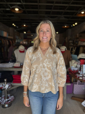 Cream Floral Print Top