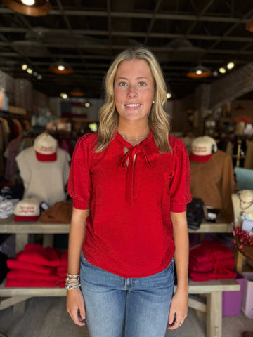 Lisette Shimmer Bow Tie Red Top