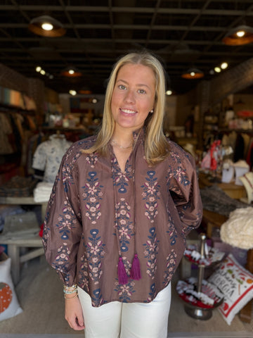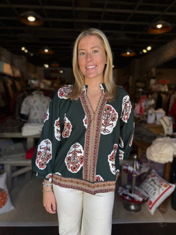 Black Floral Organza Puff Sleeve Waffle Knit Top