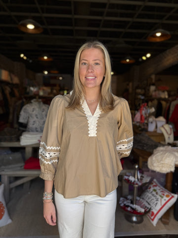 White Solid Ruffle Neck Poplin Puff Sleeve Top