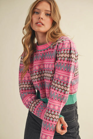 Tan Zebra Pattern Puff Sleeve Knit Top