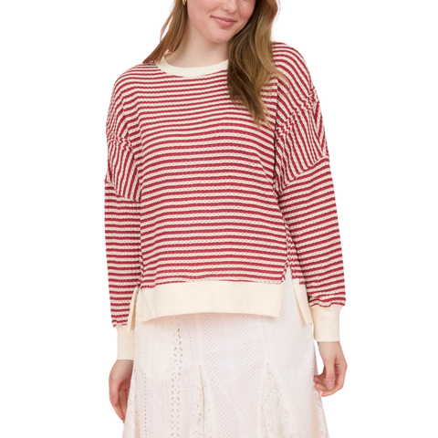 Stripe Mock Neck Bell Sleeve Tunic Sweater