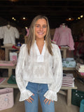 Elevate your everyday wardrobe with the Amaya Top, a timeless long sleeve piece that combines sophistication with comfort. Featuring an elegant v-neck and intricate embroidered detailing, this versatile top transitions seamlessly from casual outings to polished occasions. Choose between soft pink or classic off-white to match your personal style. The refined embroidery adds visual interest and dimension, making this a standout piece that works beautifully layered or worn alone. Perfect for those who appreciate quality craftsmanship and understated elegance.