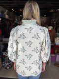 Brighten your wardrobe with the Eliza Top, a playful mix of classy ivory fabric and charming green floral embroidery. Perfect for adding a fresh, flirty touch to any outfit, this top pairs effortlessly with jeans or skirts for a look that’s both elegant and fun. Embrace a lighthearted style that’s as lively as you are!