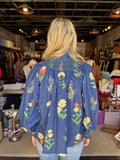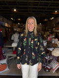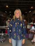 Brighten your wardrobe with the Jae Top, a playful navy floral blouse designed to add a splash of fun to any outfit. Its lively floral pattern on a deep navy background brings a fresh, cheerful vibe that's perfect for casual days or brunch with friends. Easy to mix and match, the Jae Top promises comfort and style in every wear. Let your look blossom with this charming favorite!