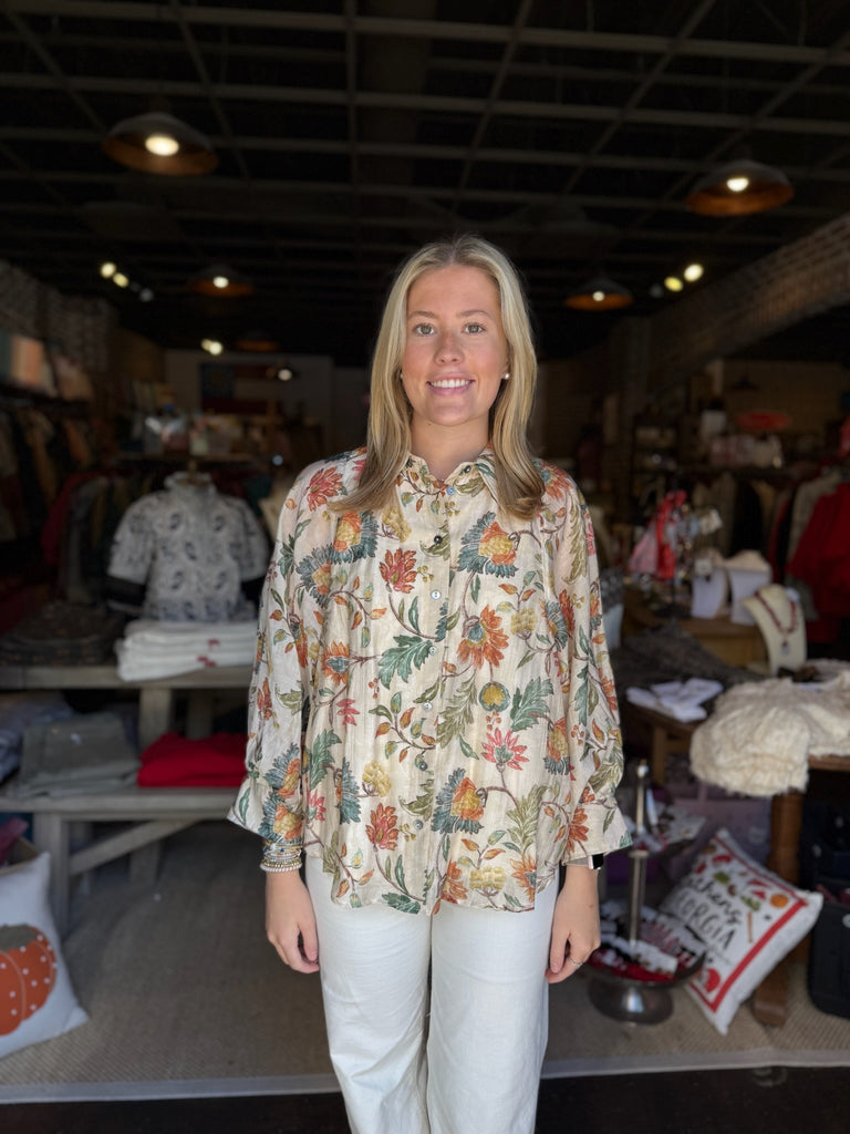 The Lizzie Top brings effortless style to your fall wardrobe with its breezy linen construction and vibrant floral print. Perfect for layering or wearing solo, this colorful piece transitions seamlessly from casual days to weekend adventures. The breathable fabric keeps you comfortable while the cheerful botanical design adds personality to any outfit. A versatile essential that celebrates the season in style.