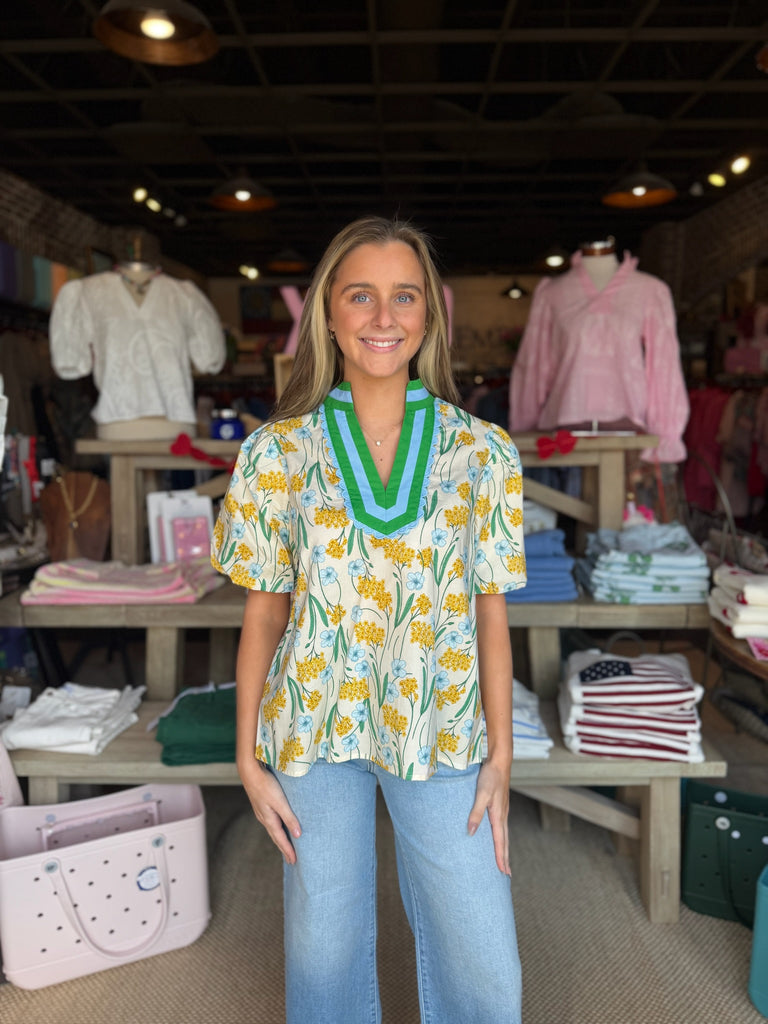 Elevate your everyday wardrobe with the Wren Top, a striking floral design enhanced by bold colorblock accents. This piece seamlessly blends feminine florals with modern geometric styling, creating a versatile look that transitions effortlessly from casual outings to weekend gatherings. The thoughtful color blocking adds dimension and visual interest, making it a standout choice for anyone seeking to refresh their closet with contemporary flair. Perfect for layering or wearing solo, the Wren Top delivers both style and wearability in one captivating package.