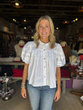 Solid White Poplin Pleated Sleeve Top
