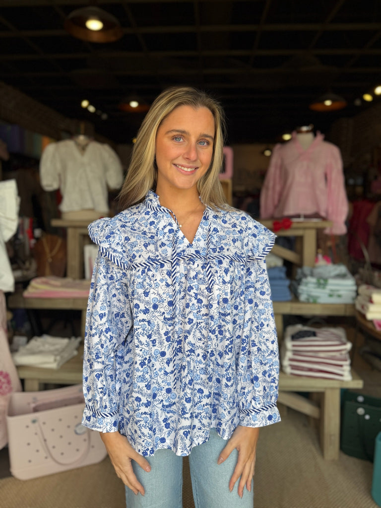 The Beaufort Top is a stylish and versatile addition to any wardrobe. Crafted from 100% cotton, this top offers a comfortable and breathable fit, perfect for any season. The V-neck design is accentuated with elegant ties, adding a touch of sophistication to your look. Ruffle shoulders bring a playful and feminine flair, while the contrast stripe trim provides a chic and modern edge. With wrist-length sleeves, this top is ideal for layering or wearing on its own.