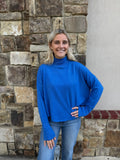 Elevate your wardrobe with this royal blue turtleneck sweater featuring elegant button details along the sleeves. Crafted for both style and comfort, its soft knit fabric keeps you warm while the vibrant blue hue adds a bold touch to any outfit. Perfect for layering or wearing alone, this sweater offers a refined look that transitions effortlessly from casual days to polished evenings.