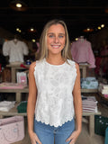 White Eyelet Cotton Scallop Top