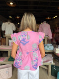 Elevate your wardrobe with this stunning floral top, where soft pink and purple blooms create an effortlessly romantic aesthetic. The delicate botanical print brings dimension and personality to any outfit, perfect for transitioning from casual days to evening occasions. Crafted for comfort and style, this piece pairs beautifully with denim, skirts, or tailored trousers. Whether you're dressing up or keeping it relaxed, this versatile top becomes an instant favorite that celebrates your unique sense of fashion.