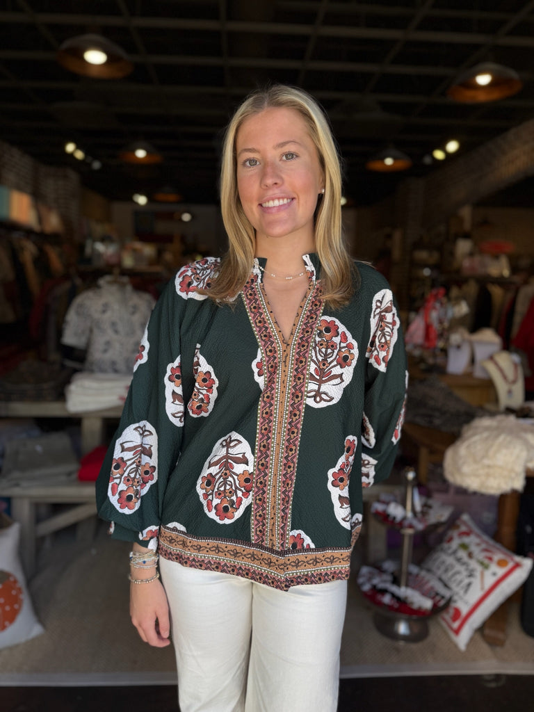Bring a touch of nature-inspired style to your wardrobe with this stunning forest green top. The rich, earthy hue pairs effortlessly with your favorite jeans or skirts, making it a versatile staple for any season. Whether you're heading to brunch with friends or keeping it casual on the weekend, this piece delivers comfort and timeless appeal. The perfect way to add a pop of color while staying effortlessly chic.