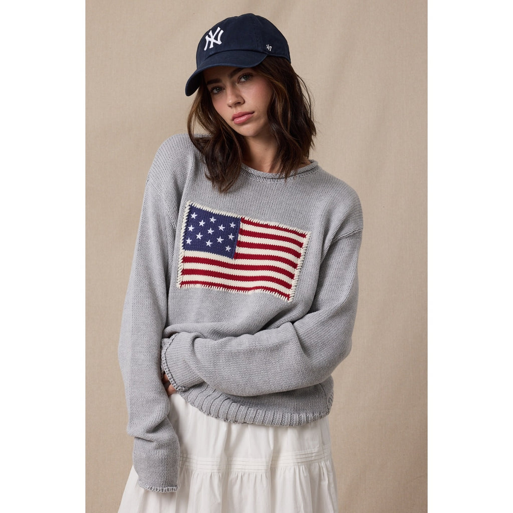 Show your patriotic style with our ‘American Flag’ Sweater—cozy, bold, and perfect for making a statement on national holidays or any casual occasion.