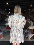 Twirl into any occasion in this charming ecru floral mini dress! Delicate ruffle puff sleeves add a touch of whimsy, while the adorable bow detail at the back keeps things flirty and fun. Perfect for brunch dates, garden parties, or whenever you want to feel effortlessly feminine and fabulous. The lightweight fabric moves with you, making it as comfortable as it is cute. Dress it up with heels or keep it casual with sneakers—this versatile piece is ready for whatever adventure awaits!