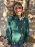 Bring a touch of nature-inspired charm to your wardrobe with the Grace Top. This playful button-down features fluttery long sleeves and a soft collar, blending botanical green and earthy brown hues for a fresh, lively look. Perfect for adding movement and color to any outfit, its lightweight fabric and flattering cut make it an easy favorite for casual days or dressed-up moments.