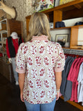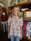The Maddey Top brings a playful touch to your Thanksgiving wardrobe with its delicate floral embroidery and breezy short sleeves. Perfect for celebrating the season, it pairs festive vibes with effortless comfort, making it a charming choice for cozy gatherings and autumn adventures.