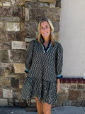 Introducing the Midnight Flow Dress - a versatile and stylish addition to your wardrobe. Perfect for Thanksgiving festivities or a night out, its collar trim adds a touch of elegance while its design allows for easy pairing with any boots. Elevate your style with this must-have dress.