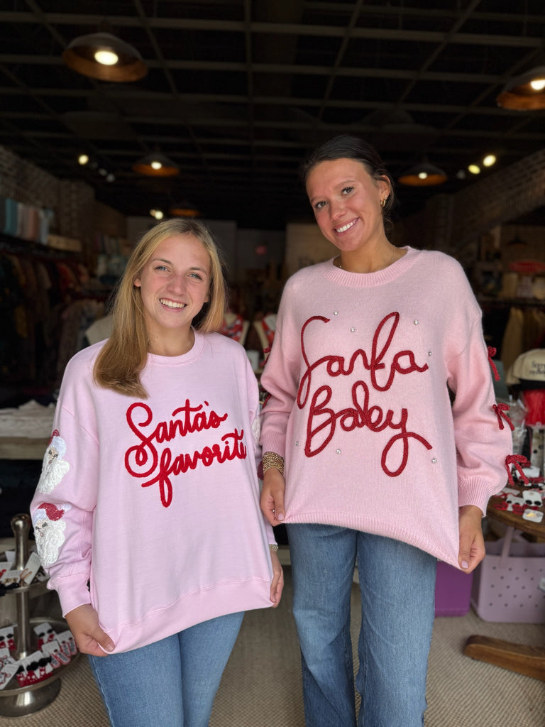 • Pink Santa Baby Bow Sleeve Sweater