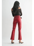 The Cabernet color cropped flare coated jean with a leather look.  Perfect for Game day.