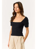 This short sleeve square neck sweater top combines chic structure with effortless comfort. The elegant neckline and soft knit make it a perfect choice for warm days when you want to look polished yet relaxed. A summer staple with timeless appeal.