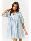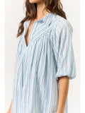 FINAL SALE - Blue & Navy Striped Puff Sleeve Mini Dress