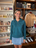 The Ophelia Gulf Blue Top is the perfect quarter zip pullover to transition into fall. Its lightweight yet cozy fabric offers warmth without bulk, making it ideal for layering on cooler days. The stylish gulf blue hue adds a fresh, vibrant touch to your autumn wardrobe while the convenient quarter zip lets you adjust comfort and ventilation easily. Embrace the season confidently with this versatile top that combines function and fashion seamlessly.