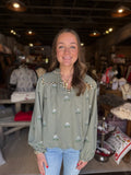 Olive Floral Embroidered Babydoll Top