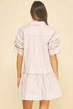 Elevate your everyday wardrobe with the Claire Dress, a timeless piece that combines classic sophistication with modern charm. Featuring a crisp button-down front and refined basic collar, this dress offers effortless versatility for any occasion. The delicate tiered detail creates flattering dimension through the bodice, while subtle shirring at the sleeves adds texture and visual interest. Perfect for layering or wearing solo, the Claire Dress transitions seamlessly from office to weekend, delivering polished style with understated elegance.