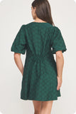 Pintuck Check Textured Puff Sleeve Mini Dress