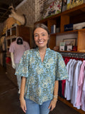 Embrace effortless style with this light blue floral print top, designed to brighten your wardrobe. The flattering V-neckline enhances your silhouette, while the delicate floral pattern adds a fresh, feminine touch. Perfect for both casual outings and polished looks, this top combines comfort with chic appeal to elevate your everyday ensembles.