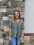 Embrace effortless style with the Keri Top, perfect for everyday wear. Its delicate floral pattern adds a fresh, feminine touch, making it easy to pair with your favorite jeans or skirts. Comfortable and versatile, this top seamlessly transitions from casual outings to workdays, enhancing your wardrobe with subtle elegance and charm.