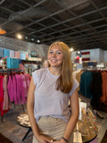 Elevate your everyday style with the Whisper Top, a casual lavender piece designed for effortless comfort. Its soft hue and cap sleeves offer a fresh, feminine touch perfect for warm days or layering. Lightweight and versatile, this top pairs easily with your favorite jeans or skirts, making it a go-to choice for relaxed yet stylish looks.